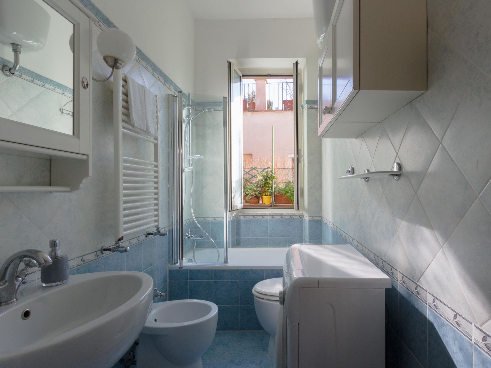 L'attico di 40mq è composto da una camera da letto con accesso diretto alla terrazza di 15mq, soggiorno con TV e divano letto, bagno con vasca e lavatrice ed una cucina attrezzata con piastre ad induzione, forno microonde, macchina per caffè e bollitore.
